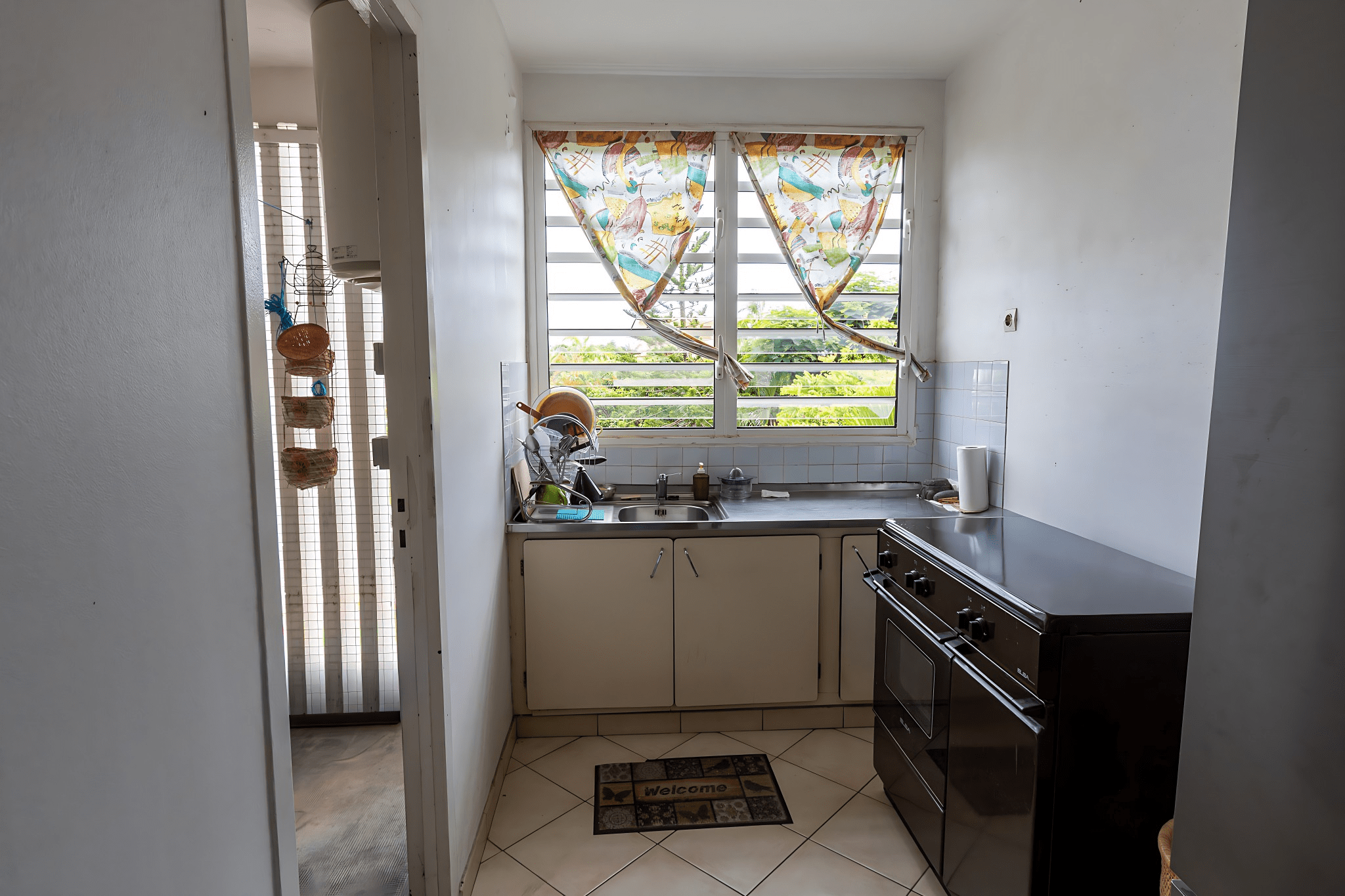 L’appartement se compose d’un séjour lumineux ouvert sur une grande baie vitrée offrant une vue dégagée, apportant une agréable sensation d’espace et une belle luminosité naturelle. La cuisine est séparée et fonctionnelle, avec un cellier attenant très pratique pour le rangement.