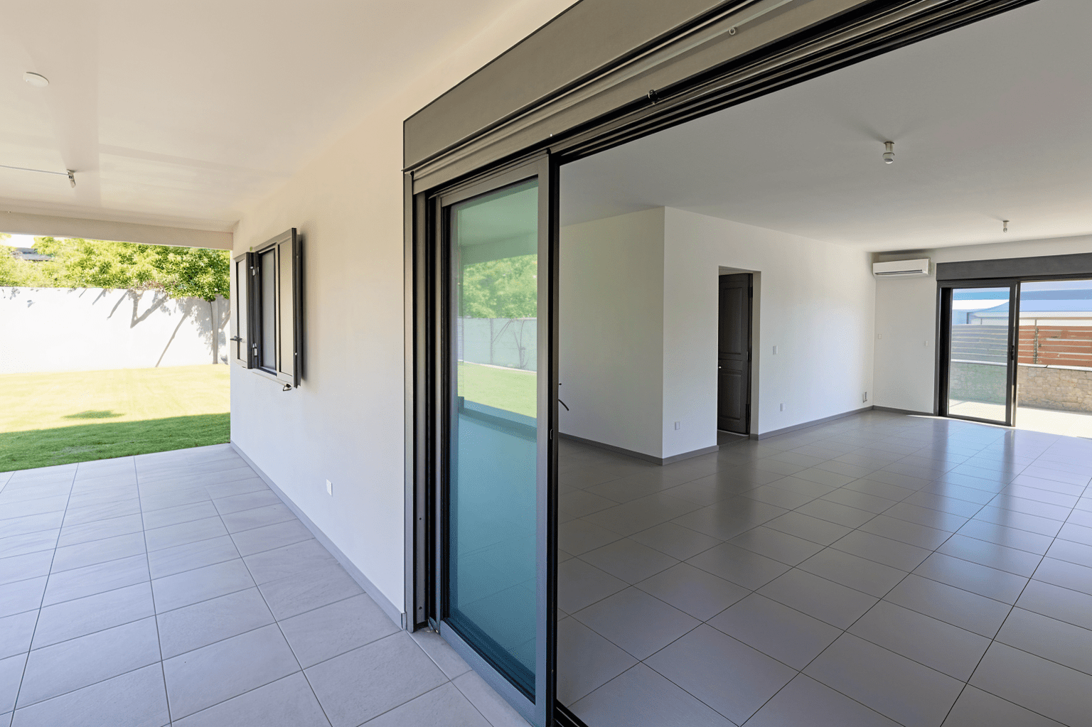 Dès l’entrée, la maison séduit par son vaste séjour traversant, baigné de lumière grâce aux larges baies vitrées équipées de volets roulants électriques. Les volumes sont généreux et la circulation intérieur / extérieur est particulièrement fluide.