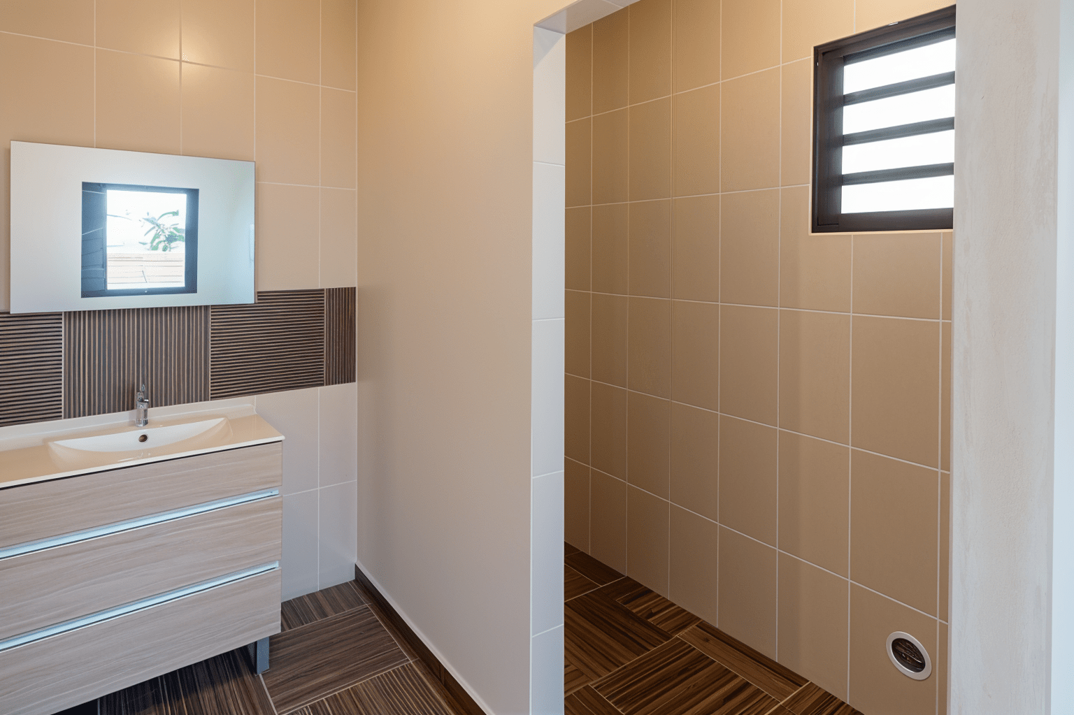 La cuisine ouverte fonctionnelle, s’intègre harmonieusement à la pièce de vie. Son implantation en L offre un bel espace de préparation et de rangement, tout en conservant la convivialité avec le séjour.